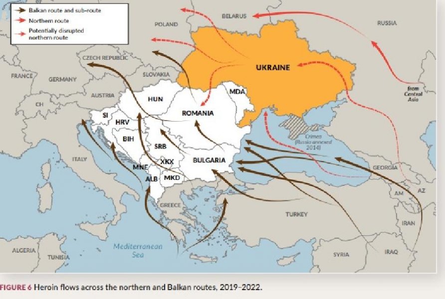 "Region jugoistočne Evrope predstavlja relativno malo tržište za potrošnju droge i predstavlja samo malu količinu proizvodnje i snabdijevanja drogom (prvenstveno kanabisa) na tržištima EU. Međutim, njegova strateška lokacija između Istoka i Zapada – i blizina sukoba u Ukrajini – može značiti da je posebno izložen efektima rata na modus operandi švercera i ruta za šverc kroz region", navedeno je u izvještaju.