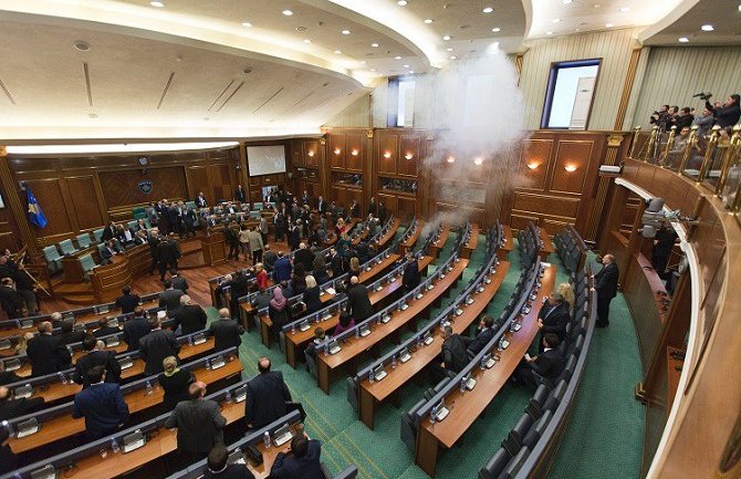 Prvi put suzavac je bačen na više mjesta u kosovskom parlamentu, pa i u kancelariju predsjednika Kadri Veseljija i to uprkos velikom broju pripadnika policije, javili su prištinski mediji.